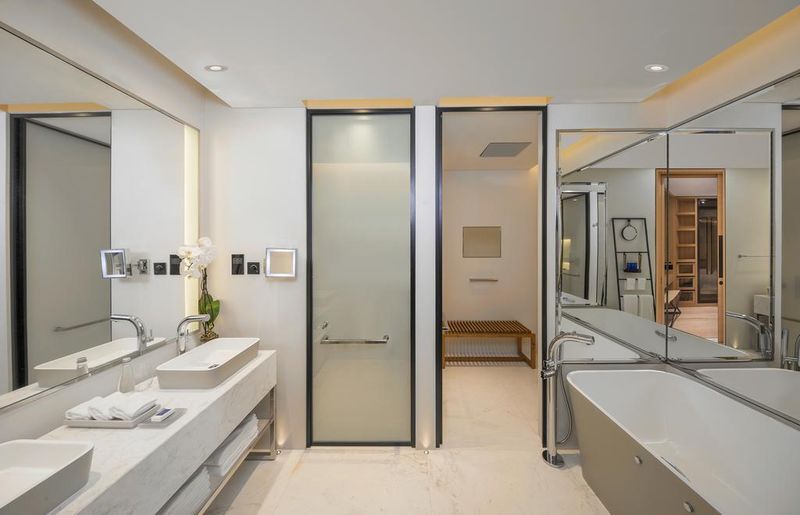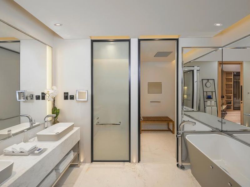 Мебель абсолютно новая, смесители в ванных, включение света и подсветок на электронной панели, свой консьерж, персонал незаметен. Уборка в любое время дня, быстрый рум-сервис.