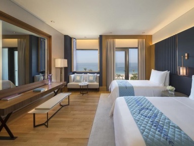 Двухместный номер с 1 кроватью King Size или 2 кроватями Queen Size, балконом, диваном и всем, что нужно для отличного отдыха. Стильный дизайн, максимальный комфорт, красивый вид на морские просторы – на этом курорте вы проведёте свой лучший отпуск!