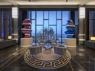 Лобби-лаундж Piazza расположен на 1-м уровне Caesars Resort Bluewaters Dubai.
